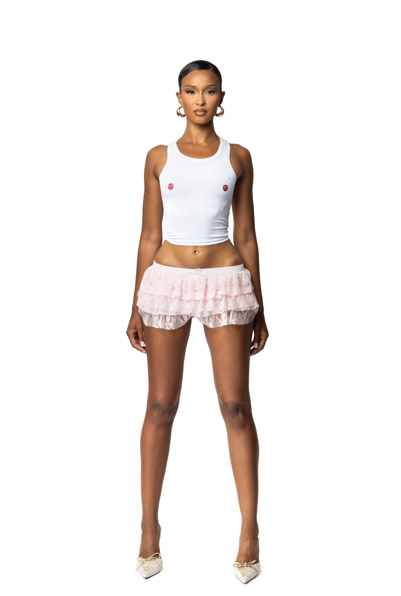 Our Cherry print white tank top brings playful charm with cheeky prints. Crafted from soft, breathable fabric, its sleek fit and sleeveless design make it perfect for layering or wearing solo. A fun, versatile addition to any wardrobe.