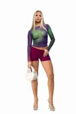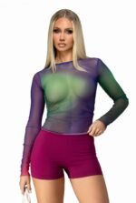 Multicolour printed mesh sheer long sleeve top.