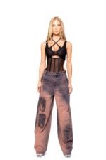 This corset stuns with intricate details, from a crossover halter and illusion neckline to bone paneling and a mimic bra fasten back. Cutouts and structure create a flawless waist-cinching fit.