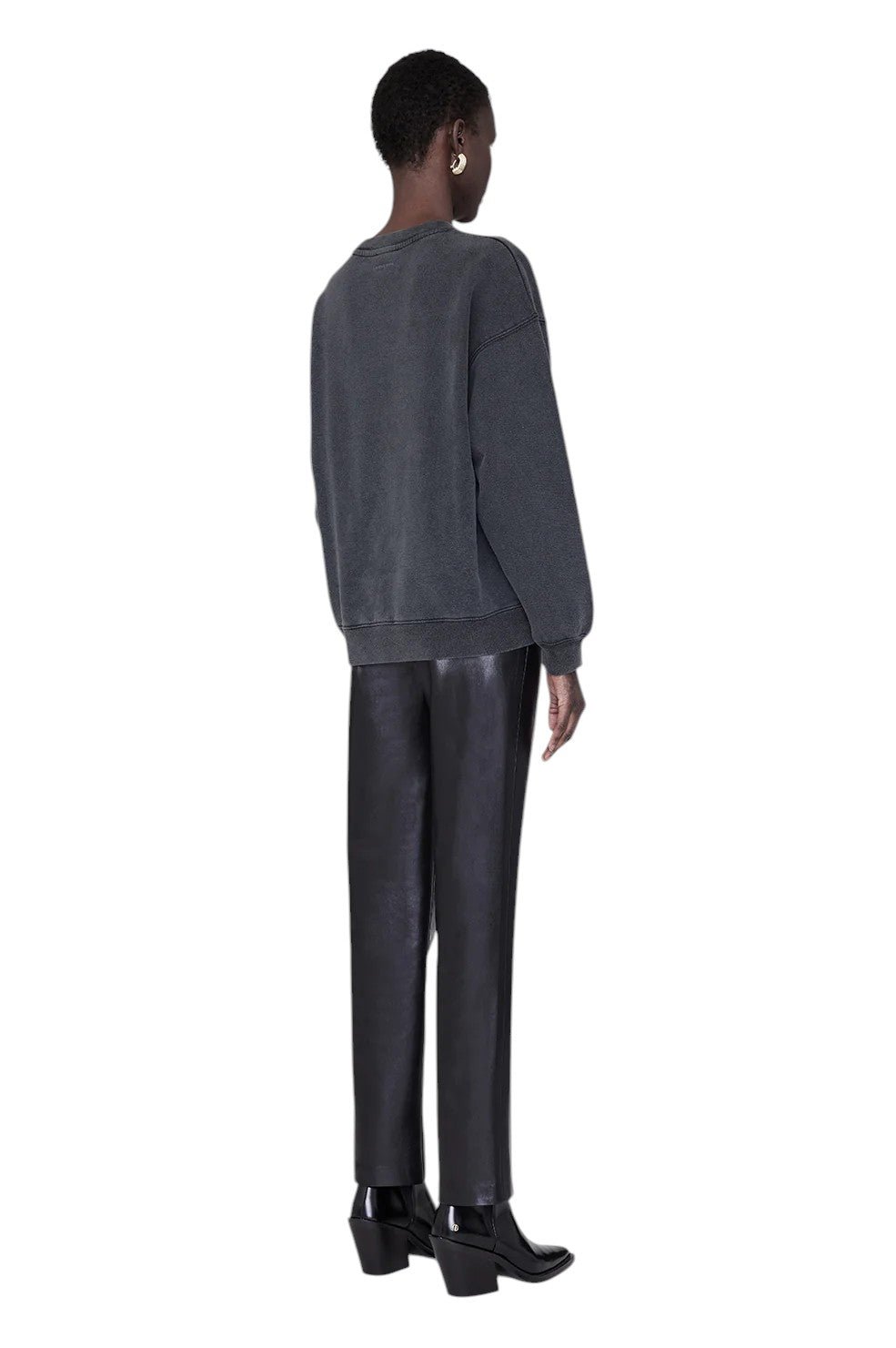 The “Spencer Sweatshirt Hearts” from Anine Bing is a midweight 100% cotton French terry crewneck in washed black. It features pigment-printed ANINE BING heart letters across the front. With a cropped, boxy fit similar to the best-selling Tiger Sweatshirt, it’s the perfect everyday piece.