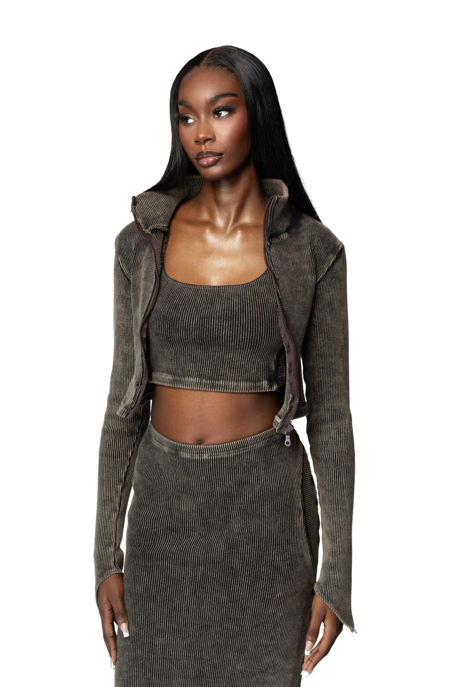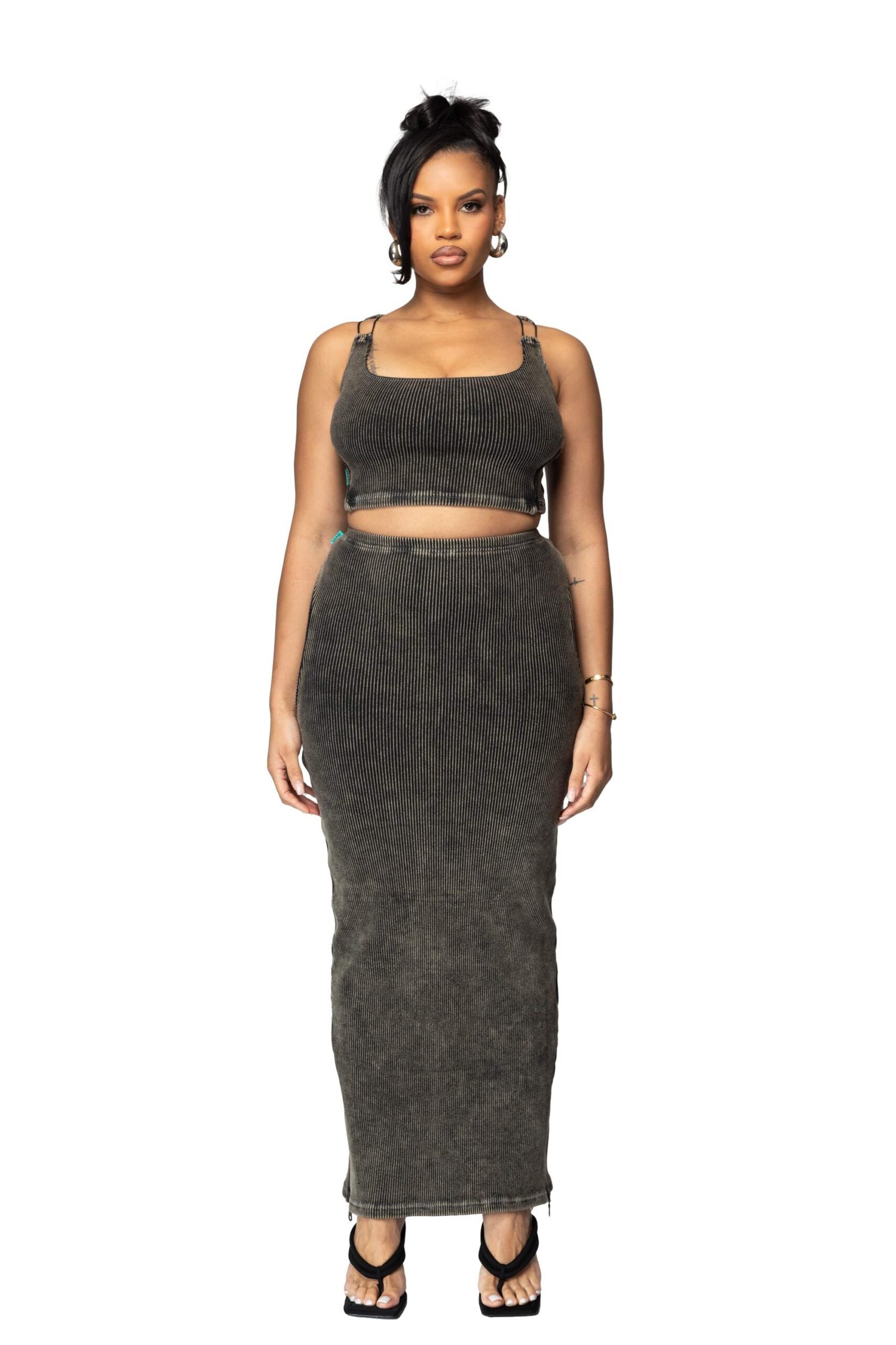 This cropped tank top with a sweetheart neckline and strappy illusion straps offers effortless elegance. Pair with REWIND leggings or the Pause midaxi skirt.